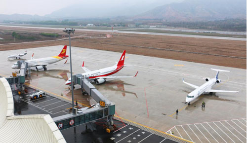五臺(tái)山機(jī)場(chǎng)自2015年12月25日至今,開(kāi)航7個(gè)月共開(kāi)通了3條航線,可通達(dá)??凇⒐鹆?、上海、銀川、重慶、天津6個(gè)城市,共保障航班764架次,公務(wù)機(jī)20架次。