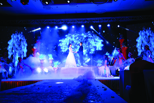 戶外草坪婚禮作為這次時尚婚禮秀中最大的亮點,現(xiàn)場充分運用泛華酒店精美靈動的外場景觀與花草樹木相映成輝,賦予婚姻使命,定格自然清新,滿足年輕人個性化的需求,填補了我市城區(qū)戶外婚禮慶典的空白。