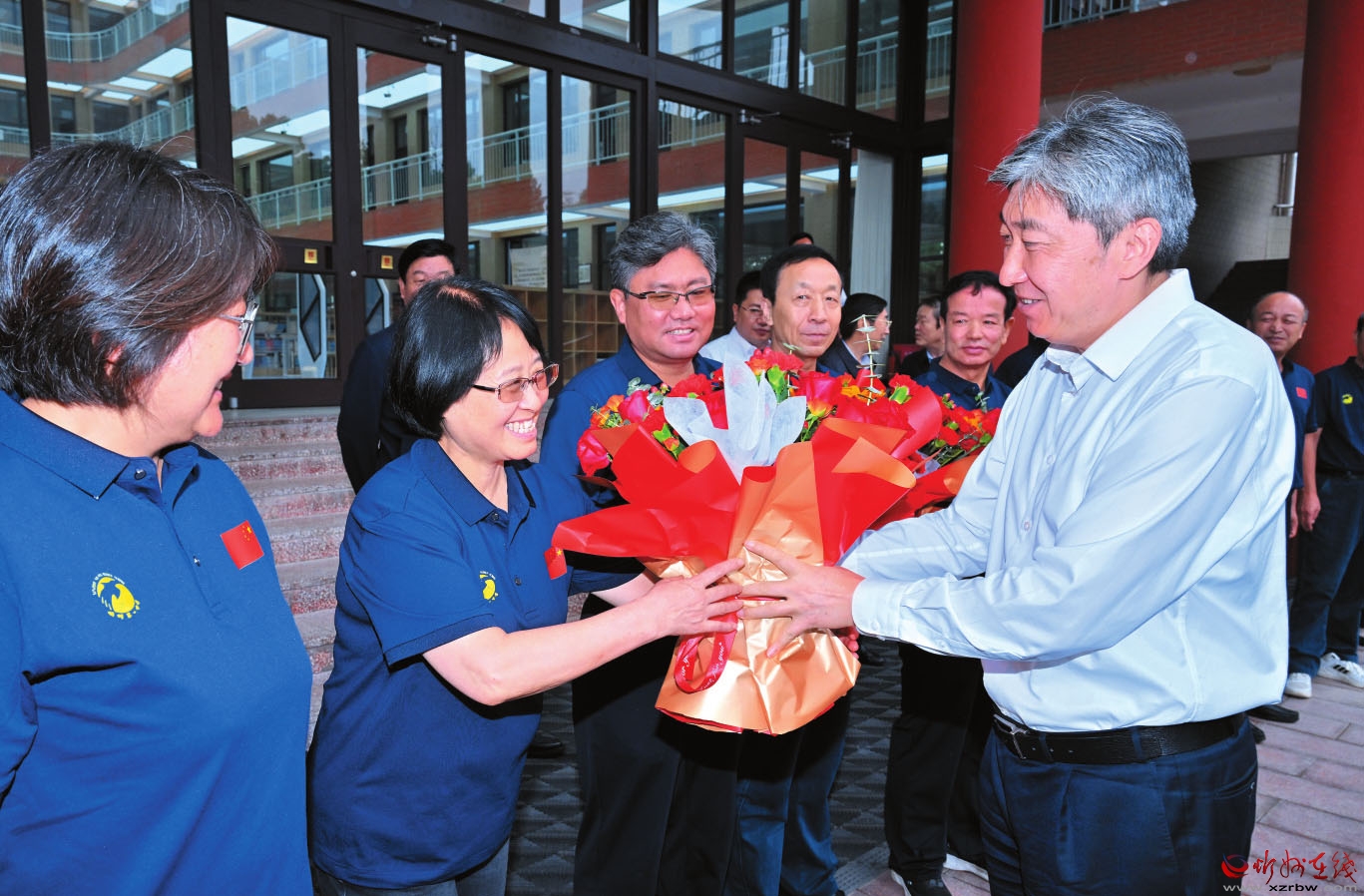 “教師是最光榮、最光輝的職業(yè),感謝你們的辛苦付出和無私奉獻(xiàn)?!痹谛弥菔械谝恢袑W(xué)校,朱曉東看望慰問了一線教師代表,詳細(xì)了解學(xué)校招生錄取、教育教學(xué)管理等情況。他指出,忻州一中文化底蘊深厚、辦學(xué)理念先進(jìn),是全市教育系統(tǒng)的“金字招牌”。近年來,學(xué)校在學(xué)生教育、師資隊伍建設(shè)等方面精耕細(xì)作,各項工作實現(xiàn)全方位提升,呈現(xiàn)出蓬勃發(fā)展的良好態(tài)勢。全體教職工牢記初心使命,立足三尺講臺,培養(yǎng)造就了一大批高素質(zhì)人才,為全市高質(zhì)量發(fā)展作出了積極貢獻(xiàn)。希望廣大教師大力弘揚教育家精神,繼續(xù)堅守崗位,扎實做好本職工作,著力辦好人民滿意的教育。老教師要充分發(fā)揮“傳、幫、帶”作用,幫助青年教師盡快提升專業(yè)技能和業(yè)務(wù)水平,助力青年教師快速健康成長。學(xué)校要關(guān)心關(guān)愛教師隊伍,聚焦教師特別是外地教師的工作和生活需求,全力解決他們的后顧之憂,激勵他們?nèi)硇耐度牍ぷ?。各級各有關(guān)部門要大力支持教育事業(yè)發(fā)展,積極營造尊師重教的濃厚氛圍,為廣大教師教書育人創(chuàng)造良好環(huán)境。