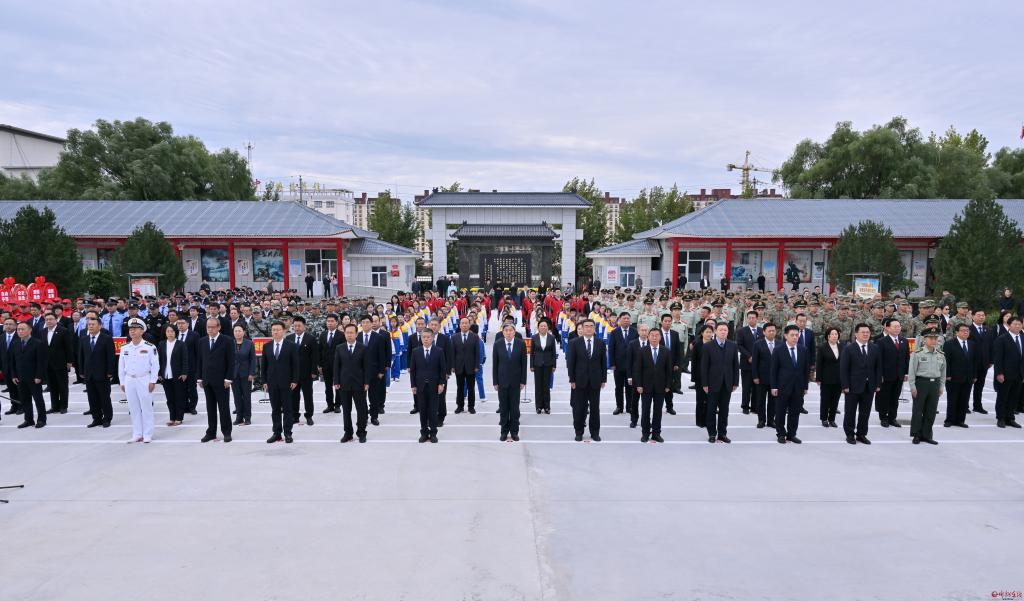 時(shí)值金秋,天高云淡。忻州市革命烈士陵園內(nèi),革命烈士紀(jì)念碑巍然聳立、莊嚴(yán)肅穆。上午9時(shí),儀式正式開(kāi)始。禮兵邁著鏗鏘有力的步伐,正步行進(jìn)到烈士紀(jì)念碑四周,莊嚴(yán)佇立。高亢激昂的《義勇軍進(jìn)行曲》響起,全場(chǎng)齊聲高唱中華人民共和國(guó)國(guó)歌,歌聲嘹亮、激昂,在烈士陵園上空久久回蕩。國(guó)歌唱畢,全體人員脫帽肅立,向?yàn)橹袊?guó)人民解放事業(yè)和共和國(guó)建設(shè)事業(yè)英勇獻(xiàn)身的烈士默哀。少先隊(duì)員獻(xiàn)唱《我們是共產(chǎn)主義接班人》,表達(dá)出對(duì)祖國(guó)的無(wú)限熱愛(ài)和對(duì)革命先烈的敬仰之情。在深情的《獻(xiàn)花曲》聲中,20名禮兵穩(wěn)穩(wěn)抬起花籃,緩緩走向烈士紀(jì)念碑,將花籃整齊擺放到烈士紀(jì)念碑基座上。市委書(shū)記朱曉東緩步登階,仔細(xì)整理緞帶,表達(dá)對(duì)革命先烈的深切緬懷。