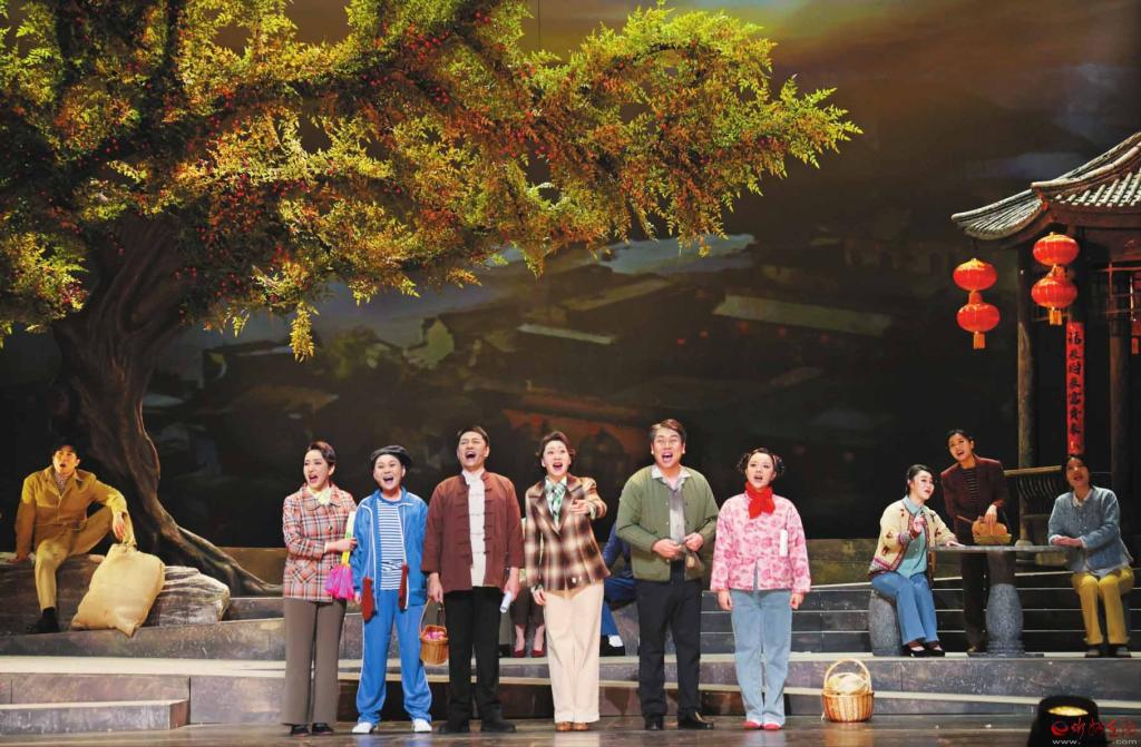 演出當天,現(xiàn)場座無虛席,在演員的深情演繹中,一幅波瀾壯闊的時代畫卷躍然眼前。劇情跨越1979年至2019年40年時光,細膩講述了一代民歌王何長歌和他的女兒何娟娟兩代民歌人薪火相傳,在保護、傳承和發(fā)展河曲民歌二人臺過程中不懈奮斗的感人故事。數(shù)十首或磅礴大氣、或婉轉(zhuǎn)悠揚、或輕松歡快的歌曲貫穿劇中,借助布景、燈光、服裝、效果、道具等舞美設計,該劇將河曲文化習俗、方言等特色元素“搬上”舞臺,為觀眾呈上一場精彩絕倫的視聽盛宴。
