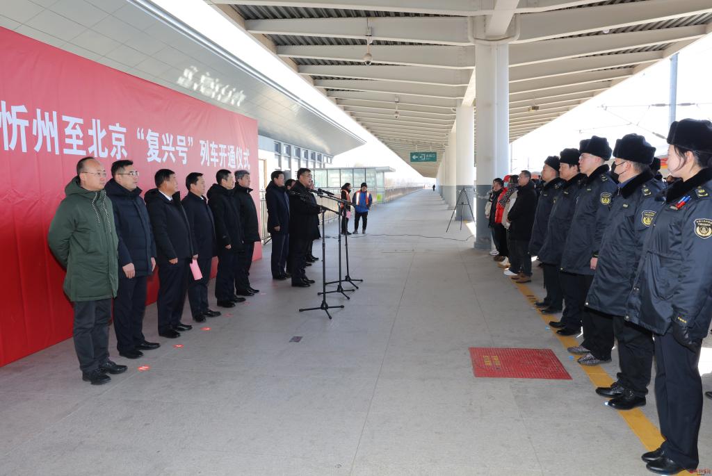 忻州至北京“復(fù)興號(hào)”列車(chē)的開(kāi)通,極大地拉近了忻州與首都北京的時(shí)空距離,為忻州促進(jìn)資源、人才、信息等要素的流通創(chuàng)造了前所未有的新機(jī)遇。李建國(guó)致辭時(shí)表示,地方將全面落實(shí)屬地責(zé)任,加強(qiáng)協(xié)同配合,服務(wù)保障“復(fù)興號(hào)”列車(chē)安全持續(xù)穩(wěn)定運(yùn)行。同時(shí)借助“復(fù)興號(hào)”列車(chē)跨省通行、連點(diǎn)成線的獨(dú)特優(yōu)勢(shì),加大忻州良好發(fā)展環(huán)境、獨(dú)特資源稟賦的宣傳推介力度,讓更多的人了解忻州、關(guān)注忻州、走進(jìn)忻州;充分發(fā)揮“復(fù)興號(hào)”列車(chē)通行賦予忻州區(qū)位交通的新優(yōu)勢(shì),鼓勵(lì)支持廣大干部和企業(yè)家走向外界、開(kāi)闊眼界,在招商引資、招才引智等方面尋求更多合作。相信在中鐵太原局集團(tuán)公司的大力支持下,隨著“復(fù)興號(hào)”列車(chē)的開(kāi)通及過(guò)境高鐵車(chē)次的增多,忻州必將成為全國(guó)高鐵網(wǎng)絡(luò)的重要節(jié)點(diǎn)城市。
