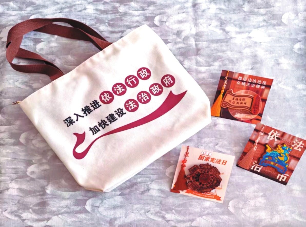 行走的法治與非遺宣傳:帆布包上的流動(dòng)風(fēng)景線。除木雕冰箱貼外,帆布袋成為“普法+非遺”系列文創(chuàng)產(chǎn)品的一大亮點(diǎn)。雙面印有宣傳圖案,正面“依法行政”“法治政府”主題鮮明,背面則是忻州非遺與景點(diǎn)交織圖,靜樂剪紙、撓羊賽、北路梆子等非遺元素與忻州古城、五臺山等景點(diǎn)相互輝映,構(gòu)成生動(dòng)文化圖卷,讓群眾沉浸于法治“文化味”與非遺“煙火氣”。