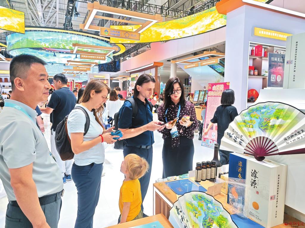 國(guó)外客商正在詳細(xì)了解代州黃酒品類。記者魏鵬飛 攝
