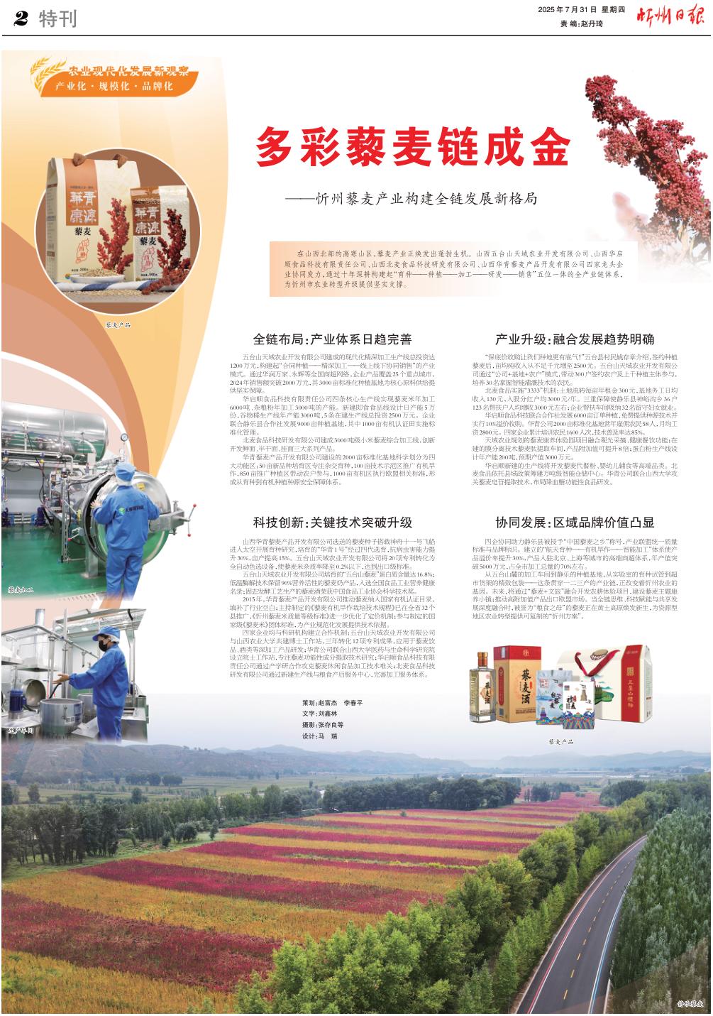 從五臺山麓的加工車間到靜樂的種植基地,從實驗室的育種試管到超市貨架的精致包裝——這條貫穿一二三產(chǎn)的產(chǎn)業(yè)鏈,正改變著忻州農(nóng)業(yè)的基因。未來,將通過“藜麥+文旅”融合開發(fā)農(nóng)耕體驗項目,建設(shè)藜麥主題康養(yǎng)小鎮(zhèn);推動高附加值產(chǎn)品出口歐盟市場。當(dāng)全鏈思維、科技賦能與共享發(fā)展深度融合時,被譽為“糧食之母”的藜麥正在黃土高原煥發(fā)新生,為資源型地區(qū)農(nóng)業(yè)轉(zhuǎn)型提供可復(fù)制的“忻州方案”。