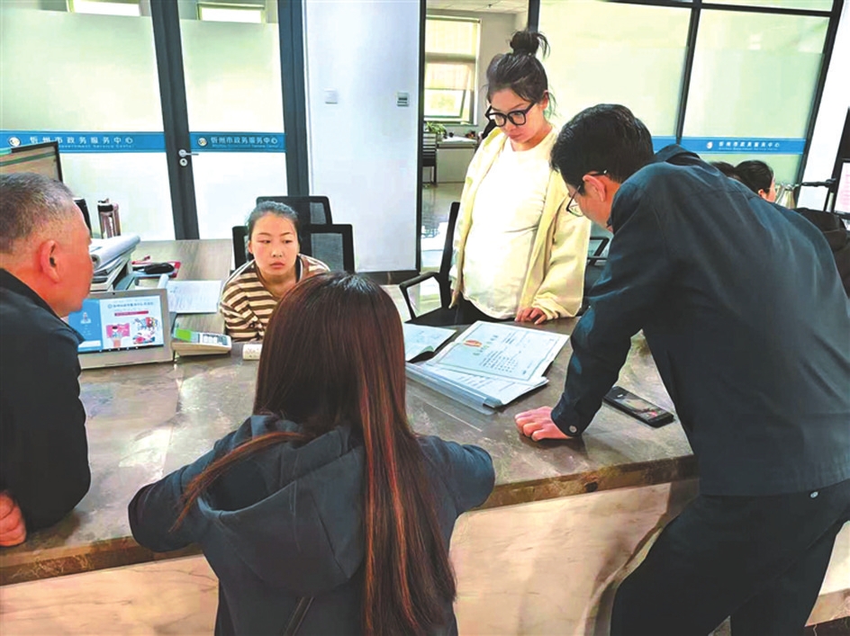 市政務(wù)大廳一樓不動(dòng)產(chǎn)轉(zhuǎn)移綜合窗口,實(shí)現(xiàn)稅務(wù)+不動(dòng)產(chǎn)登記一窗受理、并行辦理,日均辦理400件以上。