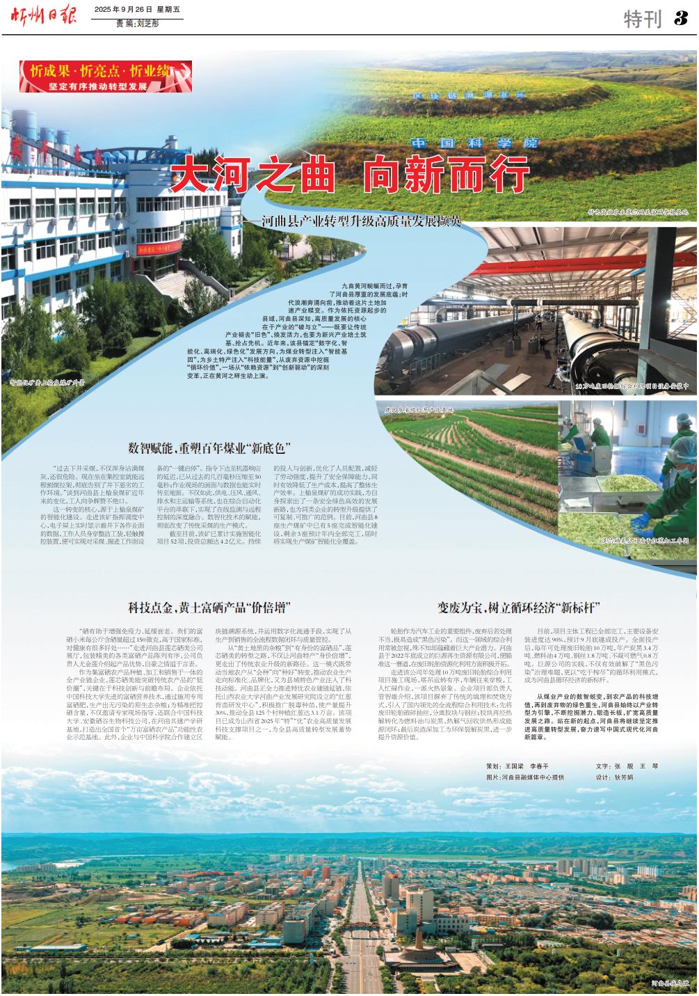 九曲黃河蜿蜒而過,孕育了河曲縣厚重的發(fā)展底蘊;時代浪潮奔涌向前,推動著這片土地加速產業(yè)蝶變。作為依托資源起步的縣域,河曲縣深知,高質量發(fā)展的核心在于產業(yè)的“破與立”——既要讓傳統產業(yè)褪去“舊色”、煥發(fā)活力,也要為新興產業(yè)培土筑基、搶占先機。近年來,該縣錨定“數字化、智能化、高端化、綠色化”發(fā)展方向,為煤業(yè)轉型注入“智能基因”,為鄉(xiāng)土特產注入“科技能量”,從廢棄資源中挖掘“循環(huán)價值”,一場從“依賴資源”到“創(chuàng)新驅動”的深刻變革,正在黃河之畔生動上演。