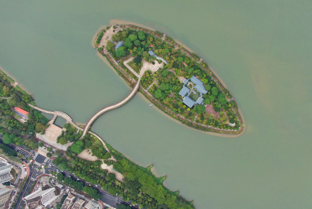 2021年4月8日拍攝的江心島書院所在的廣東清遠清城區(qū)北江的江心島(無人機照片)。新華社記者 鄧華 攝