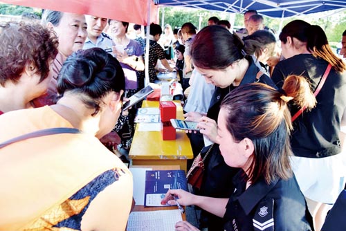 活動中,內保支隊民警向群眾詳細講解了平臺的便民功能、注冊步驟及領取小禮品流程,積極倡導廣大市民主動關注、注冊、應用平臺。期間,宣傳民警共發(fā)放宣傳資料500余份,現場關注、注冊230人,取得了良好的社會效果。圖為市民在現場掃碼(記者 徐國華)