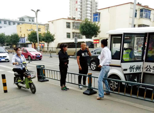 在城區(qū)體育廣場(chǎng)人行橫道上,交警對(duì)不禮讓行人的車(chē)輛進(jìn)行處罰,受到市民關(guān)注和贊同。一網(wǎng)友攝于9月21日