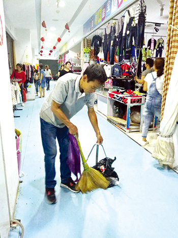 整個(gè)云河商場(chǎng)只有一層,共60多家商戶,衛(wèi)生清潔一天3次,工作量雖然不是很大,卻也不輕松。記者見到老馬時(shí),他正在做商場(chǎng)關(guān)門前的最后一次清掃。不時(shí)有商戶喊老馬過去收紙箱和塑料袋,老馬加快了手里的動(dòng)作?!吧虉?chǎng)是公共場(chǎng)所,管理也挺嚴(yán)格的,我得隨時(shí)注意看哪里有了垃圾,或是公共設(shè)施出了問題,要不人來人往怕出事。干凈整潔的環(huán)境代表著商場(chǎng)的形象,也能讓顧客購物時(shí)有個(gè)好心情,這也是我工作的價(jià)值吧?!崩像R坦言,有的人衛(wèi)生習(xí)慣特別不好。商場(chǎng)里童裝生意最為火爆,有個(gè)別帶孩子的家長直接讓孩子隨地大小便,不僅弄臟了環(huán)境也作了不良示范。老馬希望通過創(chuàng)衛(wèi),大家愛護(hù)環(huán)境衛(wèi)生的意識(shí)得到提高,這樣他也可以輕松點(diǎn)了。(王菲)