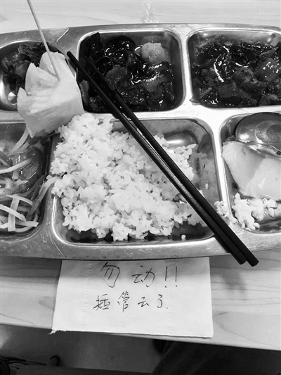 之所以要選擇這樣的方式,他解釋,因為當時餐廳里沒有其他同科同事,而且麻煩他人一直守著自己的餐盤也不可能,所以就希望留下紙條提示食堂工作人員不要收他的餐盤。而在去年,欒遠航就曾遇到過一次臨時離開,餐盤被收走的尷尬?!昂髞聿骞芎茼樌畈欢?0分鐘我就回來了,餐盤也沒被收走。” 欒遠航說。