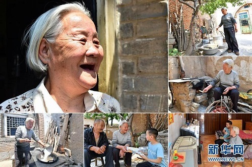 田何英,女,1949年出生,山西省長治市潞城區(qū)上黃村人,全家人靠種植5畝糧食地過日子,家人的重病使其陷入貧困。2015年開始,田何英和家人享受種植產業(yè)補貼和金融扶貧補貼,孫子上學享受“雨露計劃”補貼。2017年,田何英家脫了貧。 左上:田何英肖像;右上:田何英在院子里;右中:田何英在生火做飯;右下:田何英和孫子一起看電視;下中:田何英(中)和家人在院子里;下左:田何英在做飯(拼版照片,6月11日攝)。 地處晉東南的山西省長治市,位于由太行山、太岳山環(huán)繞而成的上黨盆地中。在群山中、崖壁上,許多村莊自然條件惡劣,基礎設施落后,脫貧致富是大山深處人們的迫切心愿。 近年來,一場場脫貧攻堅戰(zhàn),在一個個深山村打響。政府全力探索脫貧路徑的同時,山區(qū)百姓因地制宜,靠自己的雙手和智慧走上致富路,交出了一份扎實的脫貧答卷。 記者在太行山、太岳山一路尋訪,記錄下多位70歲老人的生活。這些共和國的同齡人,親歷了山鄉(xiāng)的巨變,見證著長治山區(qū)脫貧攻堅偉大工程的一步步推進。 新華社記者 曹陽 攝