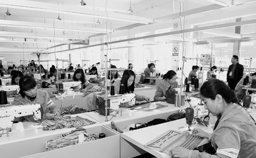 4月16日,河曲縣職業(yè)教育中心服裝加工車間里技術(shù)工人正在加班加點(diǎn)趕制夏季服飾。為促進(jìn)貧困勞動(dòng)力轉(zhuǎn)移就業(yè),該縣職教中心去年引進(jìn)江蘇省常熟市祥鼎祥服飾有限公司,并與之簽訂校企合作協(xié)議,有效帶動(dòng)農(nóng)村貧困勞動(dòng)力轉(zhuǎn)移就業(yè)。目前已有83名經(jīng)過培訓(xùn)的農(nóng)村貧困婦女成為服裝加工技術(shù)工人,月收入2000多元。(鄔耿杰 攝)