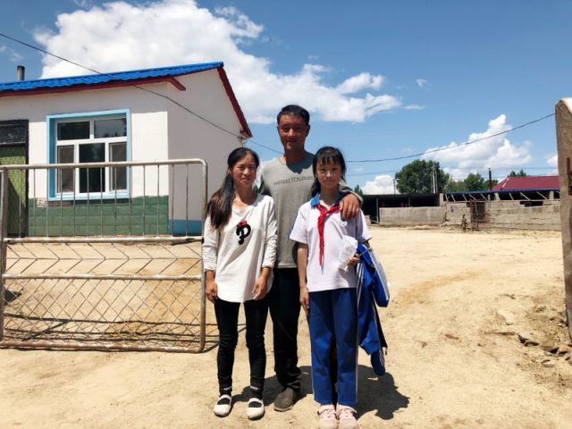臨近中午,三年級(jí)的姑娘趙金珠放學(xué)回家,撲進(jìn)了爸爸的懷抱。記者給他們一家人合張影,趙海龍自然地伸開(kāi)雙臂,緊緊地?fù)ё∑拮雍团畠?,鏡頭前三口人甜蜜微笑,一家之主趙海龍更是滿臉的自豪和幸福。