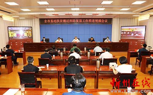 全市易地扶貧搬遷拆除復(fù)墾推進(jìn)會(huì)會(huì)場(chǎng)。范濤 攝