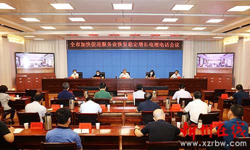 全市加快促進服務(wù)業(yè)恢復(fù)穩(wěn)定增長電視電話會議。范濤 攝