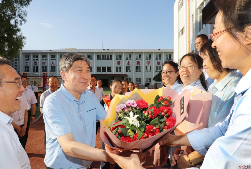 每到一處,朱曉東都向教師們致以節(jié)日問候。長征小學(xué)西校區(qū)是一所高標準規(guī)劃、高水平建設(shè)的新建學(xué)校,今年秋季學(xué)期投入使用。朱曉東察看電子圖書閱覽等教學(xué)新設(shè)施,了解學(xué)校開設(shè)的書法、歌唱、手工、足球、乒乓球、跆拳道、機器人組裝等特色教育課程,隨機檢查學(xué)生飲用水機具,向從基層選拔聘用的優(yōu)秀教師代表贈送書籍,勉勵大家珍惜崗位,肩負起時代賦予的重任,全心全意培養(yǎng)好人才。具有40多年歷史的忻州六中辦學(xué)底蘊厚重,近年來與時俱進提升教學(xué)能力。朱曉東實地了解學(xué)校發(fā)展情況后,一一為教師代表獻上鮮花,感謝大家辛勤付出,希望學(xué)校越辦越好,讓孩子們在學(xué)校有更多收獲。忻州高級中學(xué)教學(xué)設(shè)施先進,教師隊伍素質(zhì)高、經(jīng)驗豐富,今年學(xué)校畢業(yè)班高考再次取得好成績。朱曉東詳細了解學(xué)校歷史和往屆學(xué)生成就,鼓勵教師們放長眼光,對照更高標準繼續(xù)努力,為忻州增光添彩。