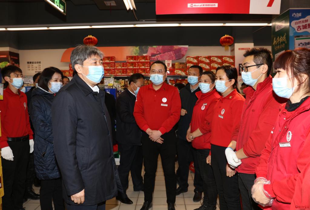 在美特好超市,朱曉東認(rèn)真察看蔬菜、肉類、海鮮等商品,詢問價(jià)格、產(chǎn)地、供應(yīng)等情況,仔細(xì)檢查市場(chǎng)疫情防控和食品安全責(zé)任落實(shí)情況,了解冷鏈?zhǔn)称方?jīng)營管理工作,隨機(jī)抽查消防栓是否有水和工作人員實(shí)際操作。他強(qiáng)調(diào),群眾能不能過好年,市場(chǎng)供應(yīng)是關(guān)鍵。要嚴(yán)格落實(shí)公共場(chǎng)所疫情防控要求和應(yīng)急處置等防控措施,全力保障消費(fèi)安全。工作人員要在做好自我防護(hù)的同時(shí),督促進(jìn)店顧客戴好口罩,嚴(yán)格落實(shí)體溫檢測(cè)和行程碼、健康碼查驗(yàn)措施。要切實(shí)保障“菜籃子”“米袋子”“果盤子”充足,全力做好節(jié)日市場(chǎng)穩(wěn)價(jià)保供工作。要時(shí)刻繃緊食品安全這根弦,強(qiáng)化冷鏈?zhǔn)称钒踩O(jiān)管,保持市場(chǎng)環(huán)境衛(wèi)生整潔,嚴(yán)格遵守食品進(jìn)貨查驗(yàn)制度,做好冷鏈?zhǔn)称蜂N售記錄、流向記錄,切實(shí)做到來源可查、去向可追,讓群眾過一個(gè)安定祥和的新春佳節(jié)。