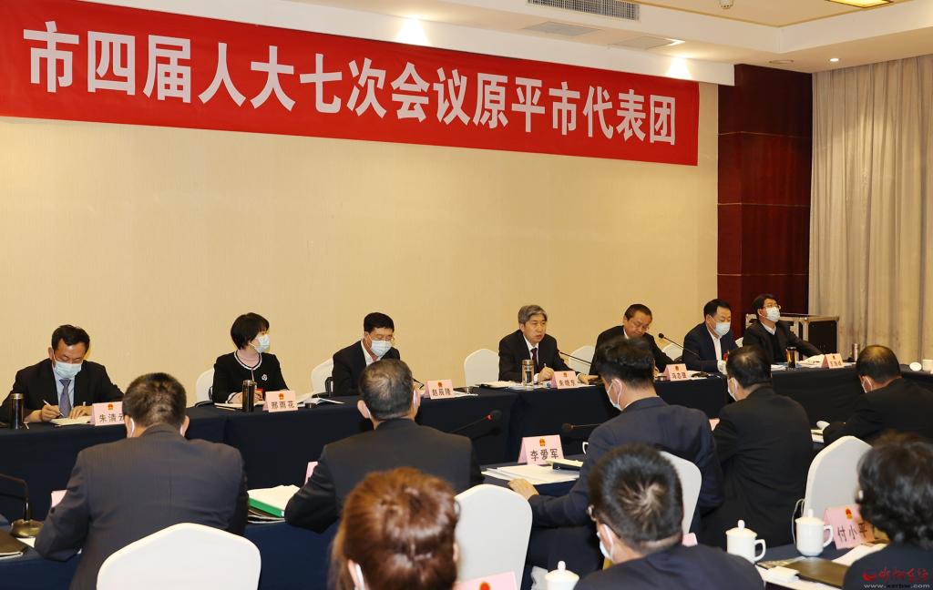 朱曉東在市四屆人大七次會議原平市代表團,同代表們一起審議政府工作報告。張存良 攝