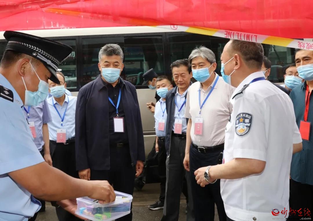 本報(bào)訊 (記者任逢春)6月7日,2021年全國(guó)普通高校招生統(tǒng)一考試第一天,市長(zhǎng)朱曉東、省教育廳副廳長(zhǎng)馬駿帶領(lǐng)巡視組一同巡視城區(qū)考點(diǎn)。市領(lǐng)導(dǎo)王月娥、郭寶厚、袁小波、吳培英參加巡視。