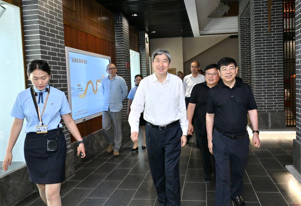 在中國汾酒城,朱曉東一行登上西城樓,俯瞰酒城全貌,聽取汾酒城的建設(shè)規(guī)模、生產(chǎn)經(jīng)營、產(chǎn)品銷售等情況介紹。隨后,朱曉東一行走進(jìn)汾酒博物館,通過館陳文物、文獻(xiàn)史料、文人墨寶等,切身感受汾酒集團(tuán)的企業(yè)文化,了解企業(yè)歷史沿革、技術(shù)創(chuàng)新及汾酒的釀造技藝等情況。