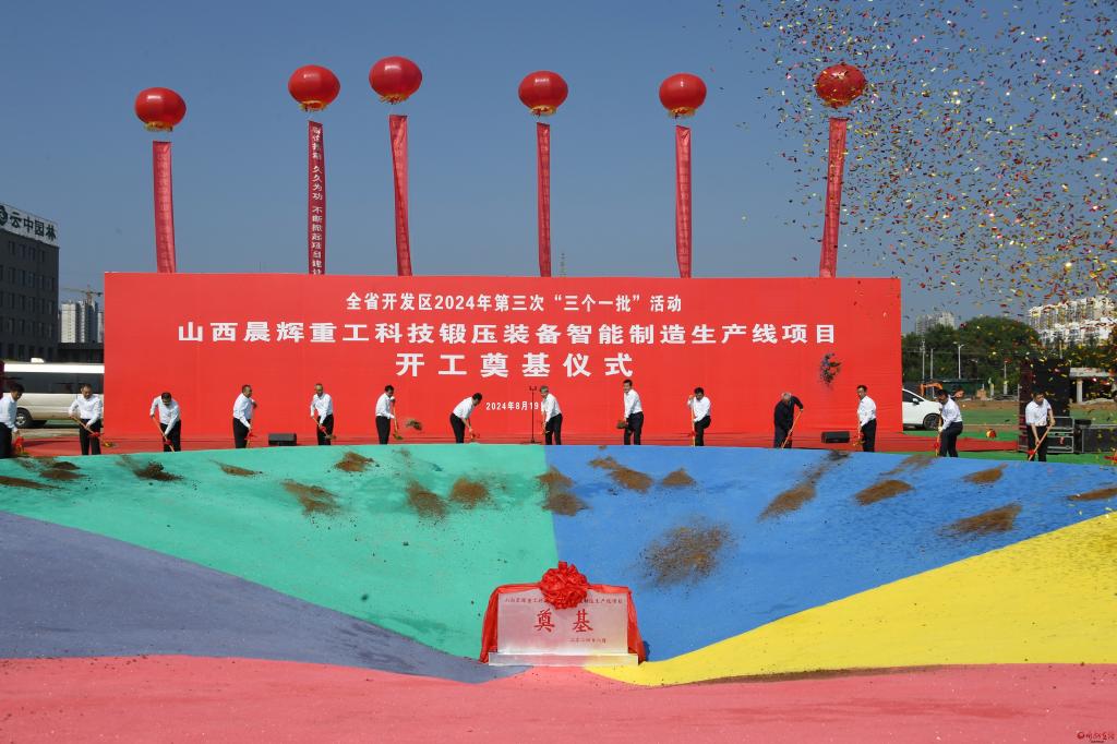 活動(dòng)期間,與會(huì)人員共同為“開(kāi)工一批”重點(diǎn)項(xiàng)目——山西晨輝重工科技鍛壓裝備智能制造生產(chǎn)線(xiàn)項(xiàng)目培土奠基,現(xiàn)場(chǎng)觀(guān)摩了“投產(chǎn)一批”重點(diǎn)項(xiàng)目——一道新能源(忻州)有限公司14GW光伏電池生產(chǎn)基地項(xiàng)目。(張曄)