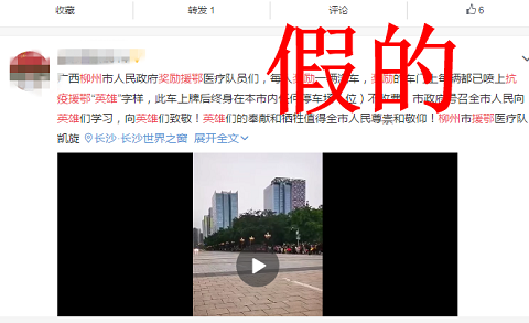 在一些微信群里,“柳州市獎(jiǎng)勵(lì)援鄂醫(yī)療隊(duì)員們,每人獎(jiǎng)勵(lì)一輛汽車,獎(jiǎng)勵(lì)的車門上每輛都已噴上抗疫援鄂‘英雄’字樣,此車上牌后終身在本市內(nèi)任何停車場(chǎng)(位)不收費(fèi)”的信息比比皆是。在抖音和微博平臺(tái),還有不少網(wǎng)友以該信息為基礎(chǔ),配上了迎接援鄂抗疫英雄回柳的畫(huà)面,制作成了短視頻在網(wǎng)絡(luò)上傳播,加劇了虛假信息進(jìn)一步傳播。