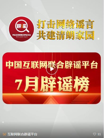 打擊網(wǎng)絡(luò)謠言 共建清朗家園 中國(guó)互聯(lián)網(wǎng)聯(lián)合辟謠平臺(tái)7月辟謠榜