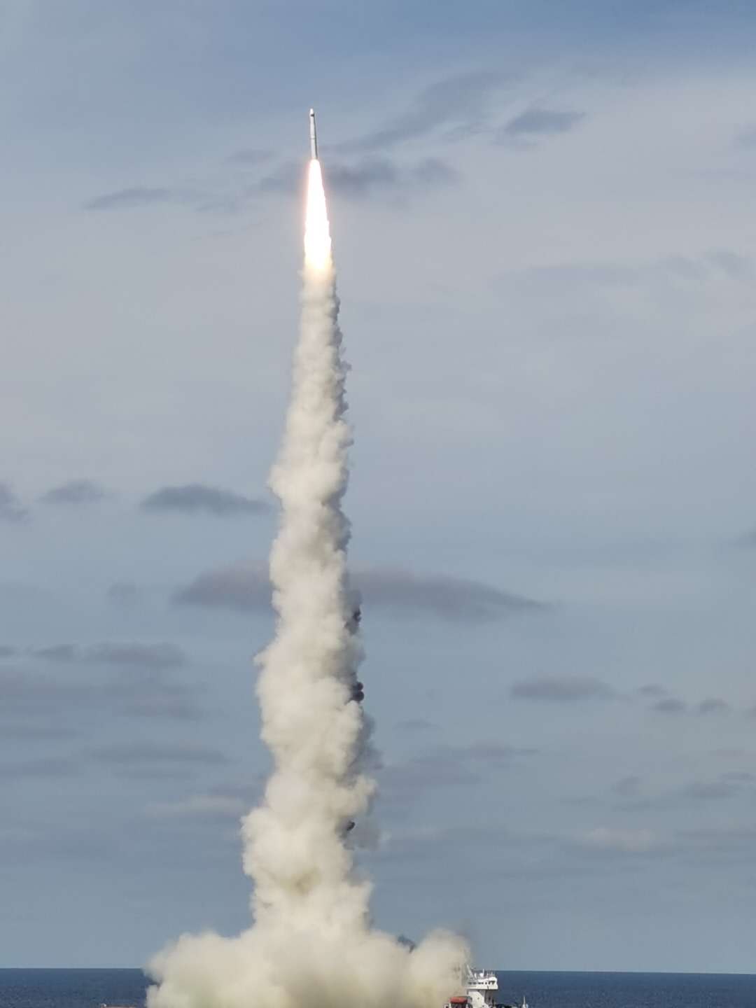 9月15日,長征十一號運載火箭在黃海海域,“一箭九星”發(fā)射成功(王偉童 攝)