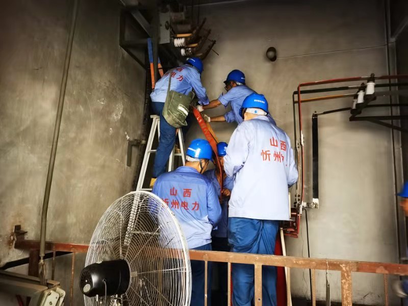 7月27日早8時(shí),國網(wǎng)忻州供電公司保供電小分隊(duì)9人奔赴現(xiàn)場,進(jìn)入小區(qū)配電室的那一瞬間,就被眼前的場景驚到了,配電室內(nèi)地面浸水導(dǎo)致主變地基下沉、變壓器基礎(chǔ)嚴(yán)重傾斜,與之相連的高壓側(cè)設(shè)備基本損壞,母排變形、融管炸裂、觸頭損壞,目測這里的工作任務(wù)量估計(jì)得干到晚上了。