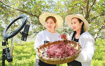 今年,甘肅省隴南市武都區(qū)的百萬畝花椒喜獲豐收,隴南市相關部門及時組織本土電商人才深入田間地頭,通過電商平臺和直播帶貨方式助農銷售。圖為日前,網絡主播在武都區(qū)郭河鄉(xiāng)候家彎村利用智能手機直播推介花椒。李旭春攝(人民視覺)