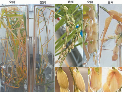 水稻空間開花時間比地面略有提前,但是灌漿時間延長了10多天,大部分穎殼不能關(guān)閉。開花時間和穎殼閉合均是水稻的重要農(nóng)藝性狀,二者在保障植物充分生殖生長和獲得高產(chǎn)優(yōu)質(zhì)種子方面都有重要作用,此過程受到基因表達的調(diào)控,后續(xù)將利用返回樣品進一步分析。