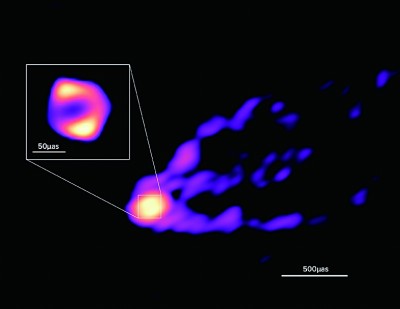 GMVA是一個(gè)由全球多個(gè)望遠(yuǎn)鏡組成的陣列。“ALMA和GLT的加入,讓這個(gè)陣列形成一臺(tái)口徑等效于地球直徑的大望遠(yuǎn)鏡,提高了成像能力?!钡聡?guó)馬普射電天文研究所的托馬斯·克里奇鮑姆說(shuō),“這讓我們獲得了一個(gè)新視角,可以看到噴流是如何從中央超大質(zhì)量黑洞周圍的環(huán)狀結(jié)構(gòu)中出現(xiàn)的,也可以在另一個(gè)波段測(cè)量黑洞周圍環(huán)狀結(jié)構(gòu)的直徑?!?/p>
