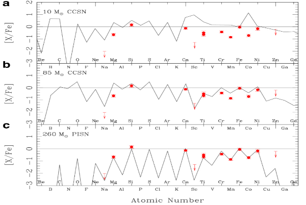此項(xiàng)研究中,團(tuán)隊(duì)結(jié)合郭守敬望遠(yuǎn)鏡低分辨率光譜和日本昴星團(tuán)望遠(yuǎn)鏡高分辨率光譜數(shù)據(jù)發(fā)現(xiàn)了一顆化學(xué)豐度極為特殊的極貧金屬星(LAMOST J1010+2358),這顆恒星的化學(xué)豐度特征無法通過核坍縮超新星理論模型解釋,卻與260倍太陽質(zhì)量的對不穩(wěn)定超新星理論計算結(jié)果高度吻合。