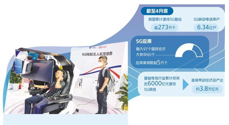 在第31屆中國國際信息通信展覽會中國電信展臺,觀眾體驗5G網(wǎng)聯(lián)無人機駕駛項目。 經(jīng)濟日報記者 黃 鑫攝 會做手術(shù)的5G機器人,可巡察的5G網(wǎng)聯(lián)無人機,能看清井下作業(yè)的5G智慧礦山……在日前舉行的第31屆中國國際信息通信展覽會上,一批5G融合應用創(chuàng)新成果集中亮相。 我國已建成全球規(guī)模最大、技術(shù)領(lǐng)先的網(wǎng)絡(luò)基礎(chǔ)設(shè)施,數(shù)字創(chuàng)新應用從創(chuàng)新消費領(lǐng)域向生產(chǎn)領(lǐng)域不斷拓展,工業(yè)互聯(lián)網(wǎng)融合應用新業(yè)態(tài)、新模式蓬勃興起。工業(yè)和信息化部部長金壯龍表示,要加快培育新興產(chǎn)業(yè),持續(xù)增強移動通信、光通信等領(lǐng)域全產(chǎn)業(yè)鏈優(yōu)勢,前瞻布局下一代互聯(lián)網(wǎng)等前沿領(lǐng)域,全面推進6G技術(shù)研發(fā),搶占未來發(fā)展新優(yōu)勢。 網(wǎng)絡(luò)建設(shè)跑出加速度 在通信展“5G發(fā)展成就展”展區(qū),一臺5G國產(chǎn)機器人引來大批觀眾駐足觀看。通過中國電信的5G定制網(wǎng)絡(luò),遠在浙江邵逸夫醫(yī)院的專家操作手術(shù)機器人醫(yī)生端,向位于北京展區(qū)的機械臂發(fā)出動作指令。在高清視野輔助下,遠程專家通過可轉(zhuǎn)腕機械臂的靈活操作,能精準完成對模型的解剖、分離、縫合等各項手術(shù)模擬動作。 今年6月6日,是我國正式發(fā)放5G商用牌照4周年。工信部數(shù)據(jù)顯示,截至今年4月底,我國累計建成5G基站超273萬個,5G網(wǎng)絡(luò)覆蓋全國所有地級市、縣城城區(qū),5G移動電話用戶達6.34億戶。我國已建成全球規(guī)模最大、技術(shù)最先進的5G網(wǎng)絡(luò)。 中國移動總經(jīng)理董昕介紹,中國移動累計開通5G基站超160萬個、千兆寬帶覆蓋超3億戶家庭、服務(wù)器總算力超8EFLOPS,總連接數(shù)超30億,牽頭國際標準近200項,申請專利超4100件,居全球運營商第一陣營。 中國電信董事長柯瑞文表示,中國電信攜手中國聯(lián)通建成全球首張規(guī)模最大的5G SA(獨立組網(wǎng))共建共享精品網(wǎng)絡(luò);持續(xù)開展全光網(wǎng)絡(luò)建設(shè),千兆光網(wǎng)已覆蓋300多個城市。 與高鐵、場館等基礎(chǔ)設(shè)施“同步規(guī)劃、同步設(shè)計、同步施工”,已成為當下5G網(wǎng)絡(luò)建設(shè)的重要方式。中國鐵塔展區(qū)的工作人員介紹,中國鐵塔會同運營商負責和實施第31屆世界大學生夏季運動會場館和沿線道路的專項5G覆蓋配套建設(shè),同步規(guī)劃、設(shè)計并施工,推動實現(xiàn)場館2G到5G網(wǎng)絡(luò)全覆蓋,并做到電源、傳輸共享一張網(wǎng),橋架、機房等大共享,節(jié)省投資20%以上。 據(jù)了解,中國鐵塔自成立以來,已累計承建5G基站超188萬個,占全球一半以上,96%以上通過共享存量站址實現(xiàn),新建站址共享率從14.3%提升至83%,相當于少建新塔98萬座,節(jié)約行業(yè)投資1760億元,節(jié)省土地5.5萬畝,減少碳排放超過2600萬噸。 “要優(yōu)化基礎(chǔ)設(shè)施布局,夯實數(shù)字經(jīng)濟發(fā)展新底座?!苯饓妖埍硎荆瑢⒓涌焱七M新型信息基礎(chǔ)設(shè)施體系化發(fā)展,深入推進“千兆城市”建設(shè),提升5G、千兆光網(wǎng)等高質(zhì)量網(wǎng)絡(luò)覆蓋深度廣度,縱深推進電信普遍服務(wù),加快實現(xiàn)寬帶邊疆工程,持續(xù)優(yōu)化農(nóng)村和邊疆等偏遠地區(qū)的網(wǎng)絡(luò)覆蓋,統(tǒng)籌數(shù)據(jù)中心布局,加快算力基礎(chǔ)設(shè)施發(fā)展,打造“云網(wǎng)融合,算網(wǎng)一體”的網(wǎng)絡(luò)架構(gòu)和算力供給體系。 融合應用深入千行百業(yè) 工信部數(shù)據(jù)顯示,目前,5G應用已融入97個國民經(jīng)濟大類中的60個,應用案例數(shù)超5萬個。基礎(chǔ)電信行業(yè)累計投資近6000億元建設(shè)5G網(wǎng)絡(luò),直接帶動經(jīng)濟總產(chǎn)出約3.8萬億元,間接帶動總產(chǎn)出約9.4萬億元,有力促進了數(shù)字經(jīng)濟發(fā)展。 在通信展現(xiàn)場,記者看到,在礦業(yè)、港口、電力等重點行業(yè),5G應用解決方案廣泛復制,5G融合應用廣度和深度持續(xù)推進,助力企業(yè)數(shù)字化轉(zhuǎn)型。 浪潮集團有限公司副總裁林巍介紹,浪潮以5G全連接工廠為抓手,通過部署新一代通信云網(wǎng)底座和云洲工業(yè)互聯(lián)網(wǎng)平臺,深入核心生產(chǎn)工藝流程,依托云網(wǎng)融合基礎(chǔ)設(shè)施,打造了10多個典型的“5G+工業(yè)互聯(lián)網(wǎng)”應用場景,提升了產(chǎn)能和質(zhì)量,降低了運營成本。目前,浪潮通信技術(shù)已在電子制造、裝備制造、礦山、鋼鐵冶金、港口、電力等10多個行業(yè)落地200多個典型案例。 中信科移動通信技術(shù)股份有限公司重點展示了其無線通信產(chǎn)品在能源、交通等領(lǐng)域的廣泛應用,例如攜手中國海油打造了首個5G+海上智能平臺試點油氣田,相關(guān)解決方案已成功應用在20多家企業(yè)。 目前,5G已在鋼鐵、制造、礦山、電力、港口等行業(yè)的16000多個專網(wǎng)項目中得到規(guī)模應用。5G行業(yè)專網(wǎng)驅(qū)動的經(jīng)濟規(guī)模突破百億,5G行業(yè)終端的出貨量超過50萬。 華為高級副總裁、運營商BG總裁李鵬舉例,5G+AI能為井下的安全生產(chǎn)貢獻創(chuàng)新力量。在復雜、危險的地下礦井作業(yè)場景中,5G智慧