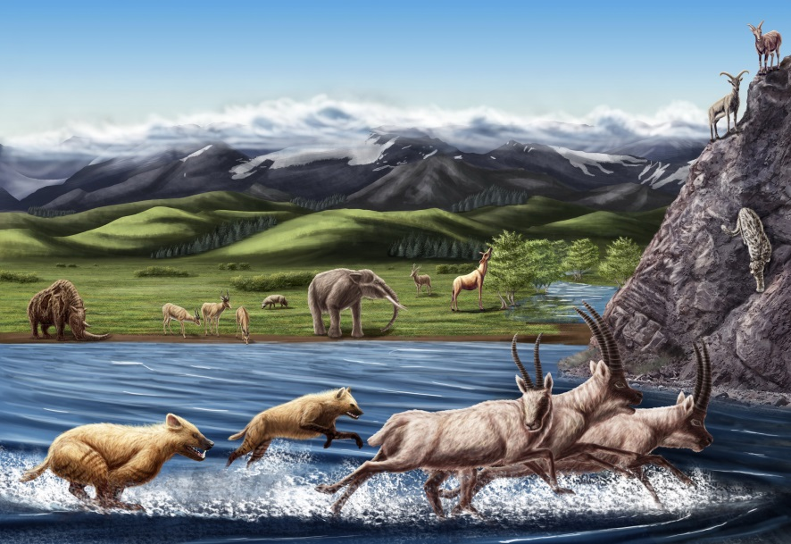 西藏札達盆地上新世哺乳動物群生態(tài)復原圖。(中國科學院古脊椎所供圖)