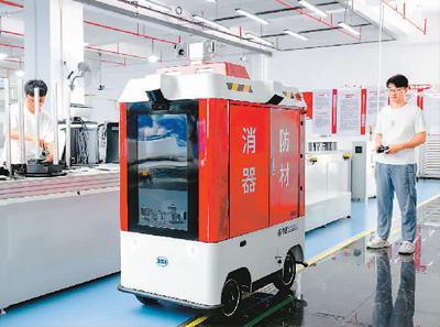 福建省福州市倉山區(qū)大力發(fā)展以智能制造為主導(dǎo)的新一代信息技術(shù)產(chǎn)業(yè),通過人才引進(jìn)、科技創(chuàng)新、強(qiáng)化金融服務(wù)和落實財稅等惠企政策,積極打造數(shù)字經(jīng)濟(jì)核心產(chǎn)業(yè)集聚區(qū)。圖為技術(shù)人員在福建漢特云智能科技有限公司生產(chǎn)線上調(diào)試消防智能巡邏機(jī)器人。新華社記者 魏培全攝