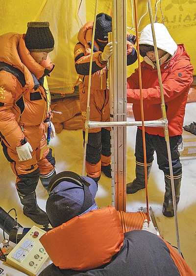 科考隊(duì)員在打鉆。