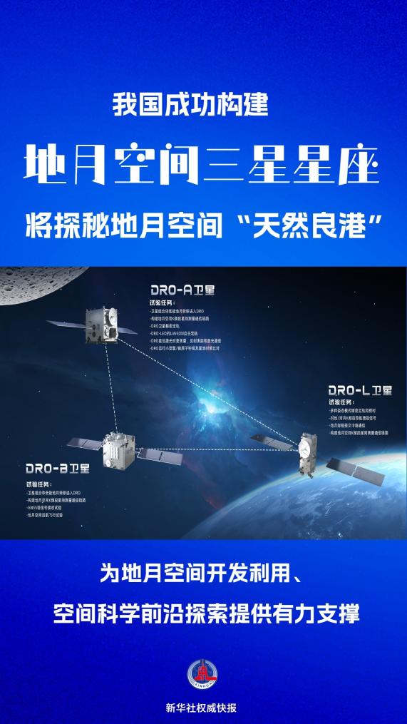 記者從中國科學(xué)院空間應(yīng)用工程與技術(shù)中心獲悉,我國已成功構(gòu)建由三顆衛(wèi)星組成的地月空間三星星座,將聚焦地月空間遠距離逆行軌道(DRO)開展深入科學(xué)研究。