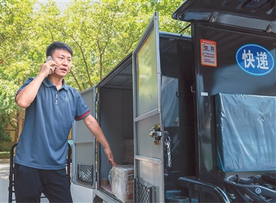 700專(zhuān)用號(hào)碼啟用后可方便消費(fèi)者識(shí)別、提升快遞員、外賣(mài)員配送效率。在網(wǎng)約車(chē)行業(yè)推廣后,700專(zhuān)用號(hào)碼還將助力乘客精準(zhǔn)識(shí)別駕駛員來(lái)電,讓駕駛員接單更順暢,減少停車(chē)?yán)@行。圖為6月29日,陜西省西安市的一位快遞員正用手機(jī)聯(lián)系顧客,準(zhǔn)備派送快件。新華社記者 毛思倩攝