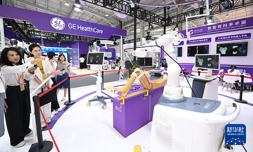 9月9日,參觀者在服貿(mào)會展廳參觀“數(shù)智骨科手術室”。新華社發(fā)