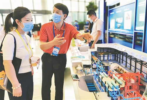 國家電投集團(tuán)的專家在模型前向參觀者介紹國家科技重大專項(xiàng)成果——國和一號(hào)(CAP1400)壓水堆核電站。經(jīng)濟(jì)日?qǐng)?bào)記者 佘惠敏攝