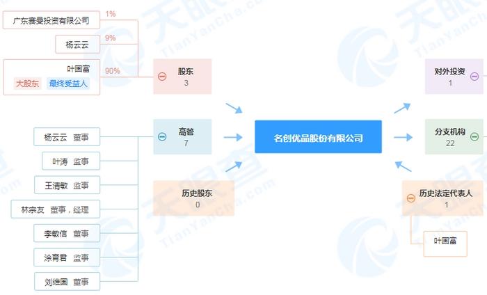 曾經(jīng)的“哎呀呀”已經(jīng)成了時(shí)代的眼淚,但在2013年,一個(gè)更強(qiáng)的名創(chuàng)優(yōu)品誕生了。天眼查顯示,名創(chuàng)優(yōu)品股份有限公司(簡(jiǎn)稱“名創(chuàng)優(yōu)品”)的曾用名是哎呀呀飾品連鎖股份有限公司(簡(jiǎn)稱“哎呀呀”),大股東、最終受益人是葉國(guó)富,其持股比例高達(dá)90%。