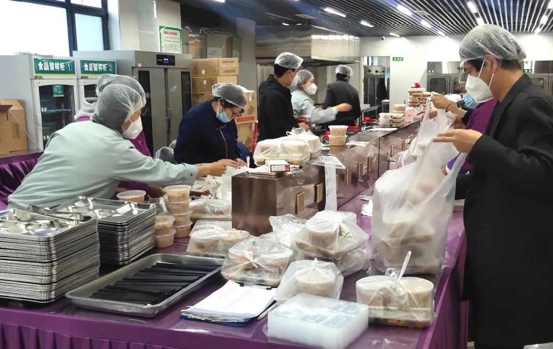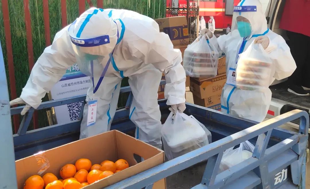 市級方艙醫(yī)院啟用以來,作為抗疫主力軍的護航者,后勤是這場疫情保衛(wèi)戰(zhàn)的關鍵一環(huán)。為做好方艙醫(yī)院運行后的餐飲、生活用品及工作人員的住宿等后勤保障服務工作,忻州市級方艙醫(yī)院后勤保障工作組夜以繼日,辛苦奉獻,始終和醫(yī)療團隊從黑夜到黎明奮戰(zhàn)在一線。18日中午12點,記者來到忻州市方艙醫(yī)院大門口看到,方艙內(nèi)外保障組工作人員正在交接餐食,一包包盒飯、水果從餐車拿出來放到三輪車上,然后由艙內(nèi)后勤保障組工作人員送到方艙內(nèi)醫(yī)護人員的手中。