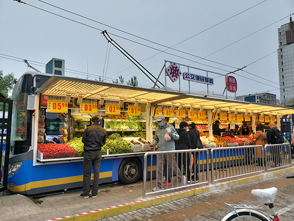 柳芳地鐵站附近開設(shè)“公交便民驛?!?,方便居民購買果蔬。人民網(wǎng)實(shí)習(xí)生 曹瑞穎攝