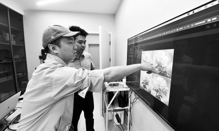 當(dāng)下,“犀牛創(chuàng)意”傳媒工作室承接了一家老廠區(qū)的老物件展覽業(yè)務(wù),田帥和韓宇帶著自己的創(chuàng)意向AI“提問”,AI生成了文案及一系列設(shè)計(jì)圖稿,由甲方選擇后他們?cè)倬?xì)加工,工作高質(zhì)高效的同時(shí)節(jié)省了大量的人力物力,降低了時(shí)間和經(jīng)濟(jì)成本。