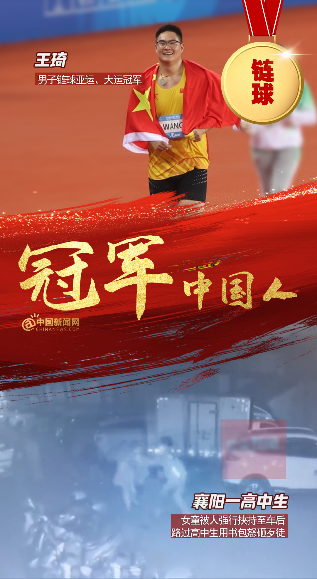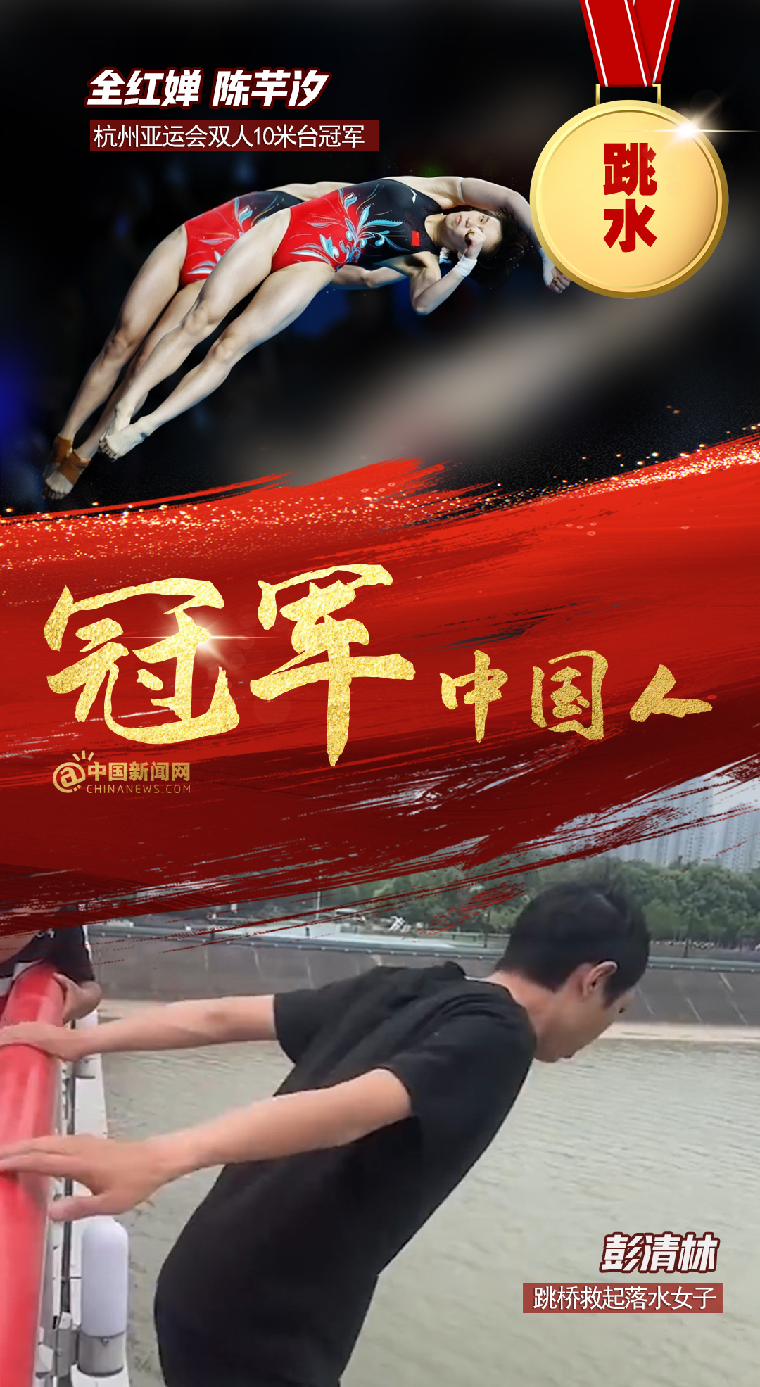 中新網(wǎng)12月15日電 全紅嬋、陳芋汐亞運(yùn)雙人10米臺(tái)奪金,彭清林跳十幾米大橋救人;中國(guó)男子4×100亞運(yùn)逆轉(zhuǎn)取勝,仙居人民醫(yī)院醫(yī)護(hù)接力搶救老人…賽場(chǎng)上,人生中,他們都是我們心中的冠軍!2023,冠軍屬于每個(gè)奮力拼搏獲得成績(jī),默默付出與人為善,激勵(lì)、幫助、照亮他人的中國(guó)人!