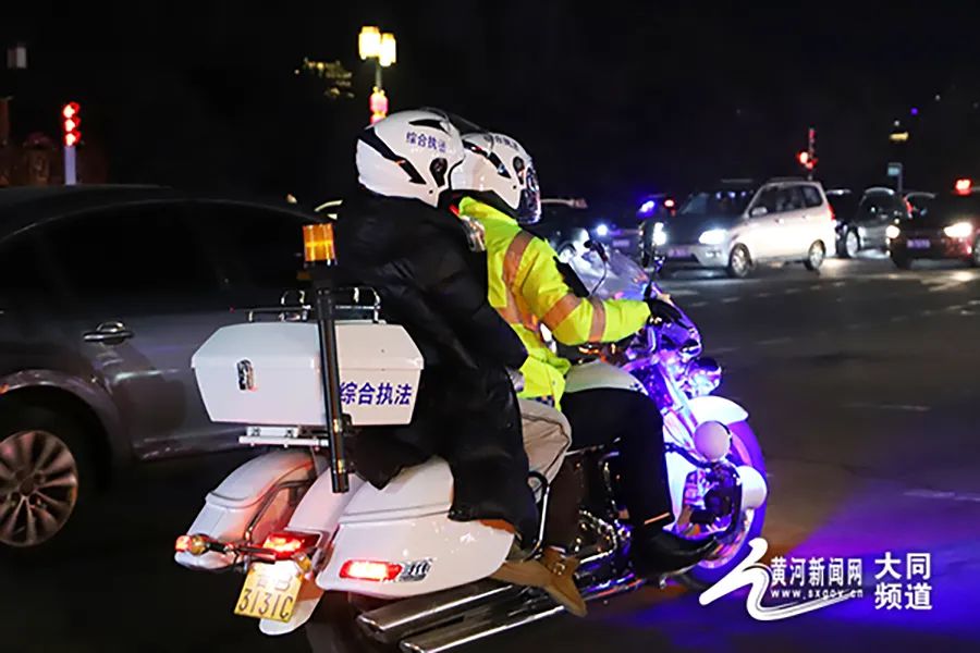 在人流如織的古城街頭,大同平城區(qū)鐵騎隊員們?nèi)找箞允?,全時段管理,快速、便捷排查轄區(qū)內(nèi)各主次干道及重點區(qū)域的死角、盲區(qū),疏導(dǎo)攤點,規(guī)范非機動車停放,幫助前來求助的旅客與市民,做到了城市管理“不打烊”,“城管藍”春節(jié)不斷檔。