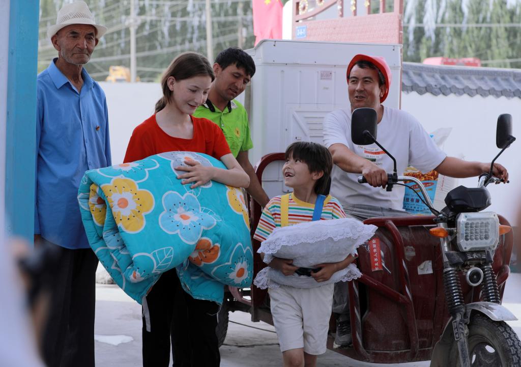 6月30日,烏什縣亞曼蘇柯爾克孜族鄉(xiāng)居民正搬進新房。新華社發(fā)(楊碩 攝)